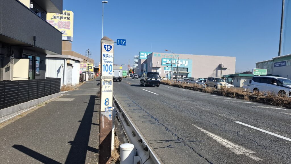 あとは同じ国道沿いを走るとはいえ、多少なりとも右左折があるので、何も考えずに走っていると16号から逸れるということが何度かあった。