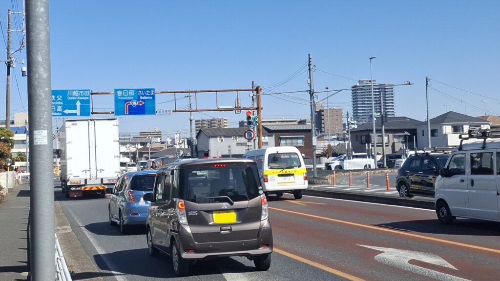 マップでもわかる通り東京都心の30~40km圏、所謂、郊外の道をひたすら進んでゆくことになります。交通量も多く延々と排ガスを吸い続けるので、健康被害待ったなし。