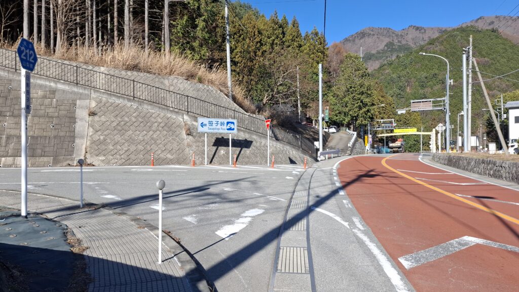 甲州街道では笹子トンネルを抜けるが狭くて危ないらしい。なのでこちらを選択。(車の横を走るのは飽きたというのもあるが)