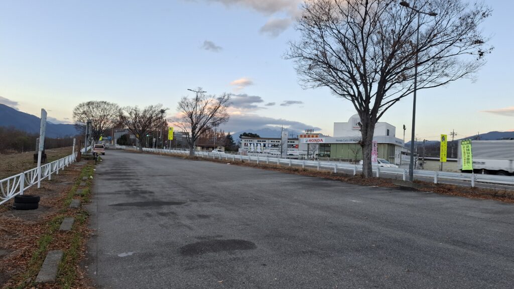 程なくして山梨県韮崎市まで来た。時刻は16時過ぎ。残り距離は50km程度。