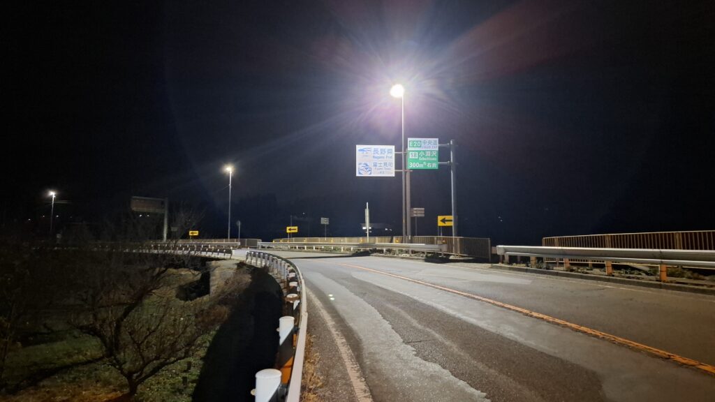 辺りが真っ暗になっても進み続けた。そして、ようやく長野県に突入。