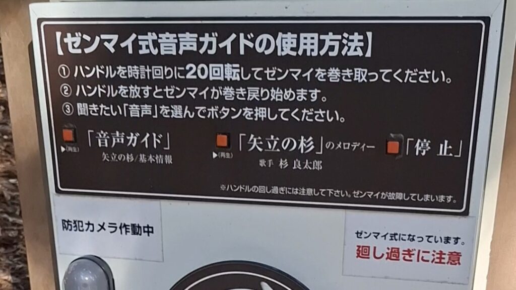 近くにはゼンマイ式の音声ガイドがあり、ちょっとした休憩にはもってこいの場所だった。トイレもあったので用を足せるのも良いところ。